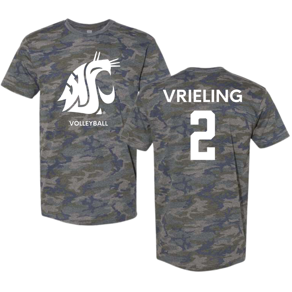 Washington State University Volleyball (W) Vintage Camo Tee - #2 Taryn Vrieling