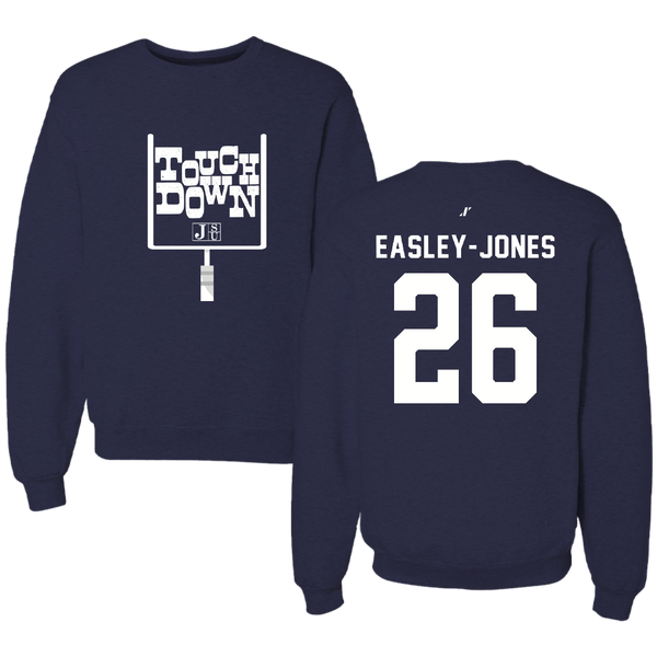 Jackson State University Football Navy Touchdown Crewneck - #26 Tavarious Easley-Jones