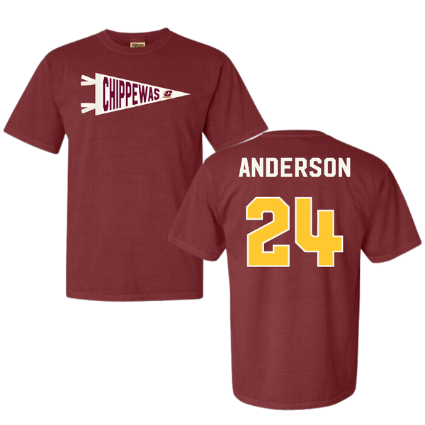 Central Michigan University Basketball Maroon Pennant Comfort Colors Tee - #24 Taylor Anderson