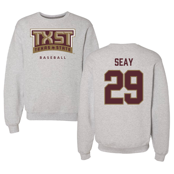 Texas State University Baseball Gray Crewneck - #29 Taylor Seay