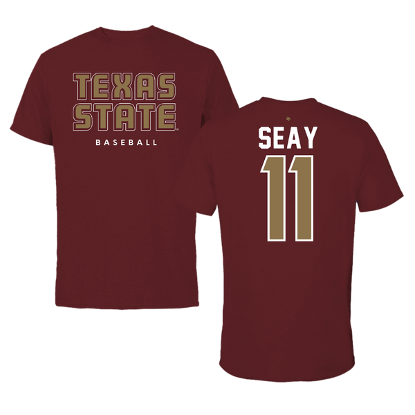 Texas State University Baseball Maroon State Tee - #11 Taylor Seay
