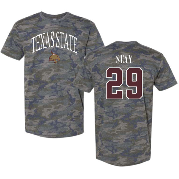 Texas State University Baseball Vintage Camo Tee - #29 Taylor Seay