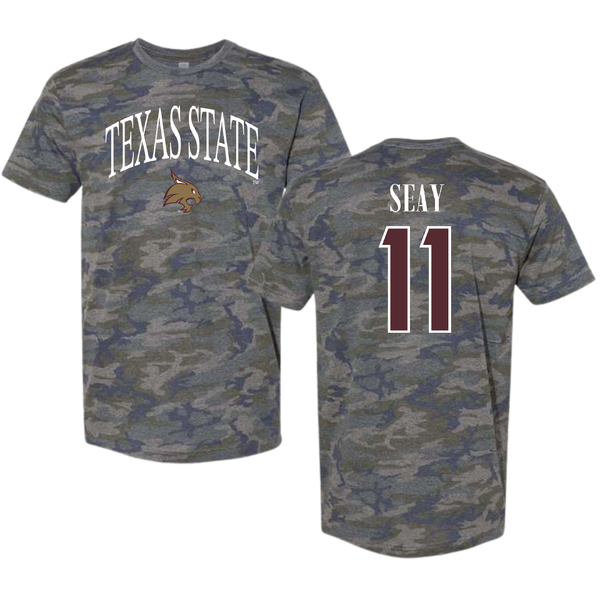Texas State University Baseball Vintage Camo Tee - #11 Taylor Seay