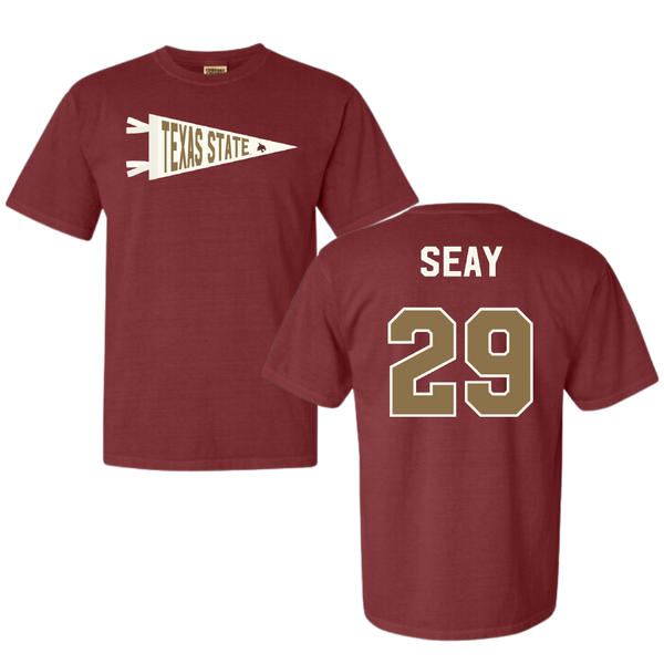 Texas State University Baseball Maroon Pennant Comfort Colors Tee - #29 Taylor Seay