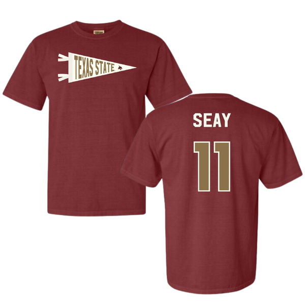 Texas State University Baseball Maroon Pennant Comfort Colors Tee - #11 Taylor Seay