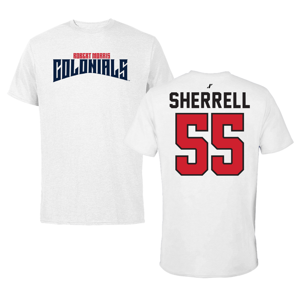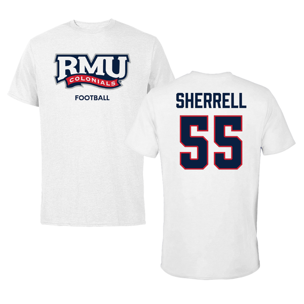 Robert Morris University Football White Classic Tee - #55 Tayvon Sherrell
