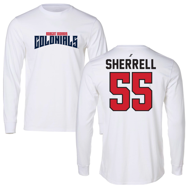 Robert Morris University Football White Mascot Long Sleeve - #55 Tayvon Sherrell