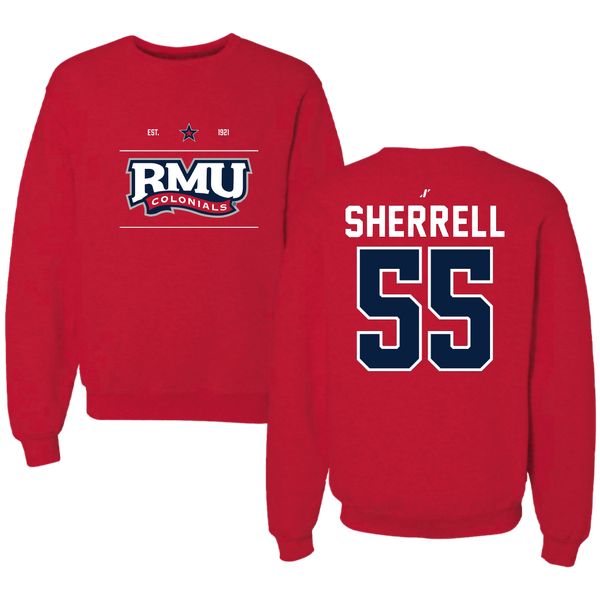 Robert Morris University Football Red General Crewneck - #55 Tayvon Sherrell