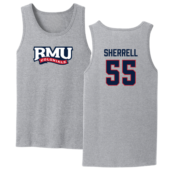 Robert Morris University Football Sport Gray Tank Top - #55 Tayvon Sherrell