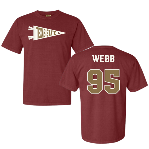 Texas State University Football Maroon Pennant Comfort Colors Tee - #95 Terry Webb