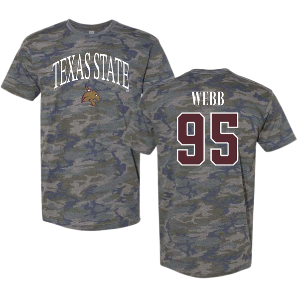 Texas State University Football Vintage Camo Tee - #95 Terry Webb