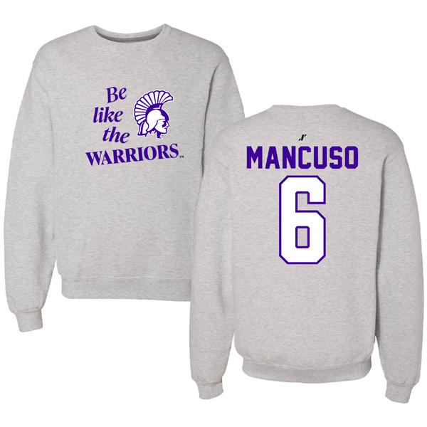 Winona State University Softball Light Gray Be Like Us Crewneck - #6 Tiegan Mancuso