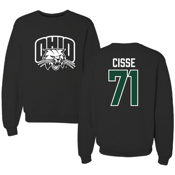 Ohio University Football Black Crewneck - #71 Tigana Cisse