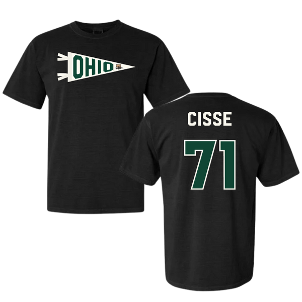 Ohio University Football Black Pennant Comfort Colors Tee - #71 Tigana Cisse