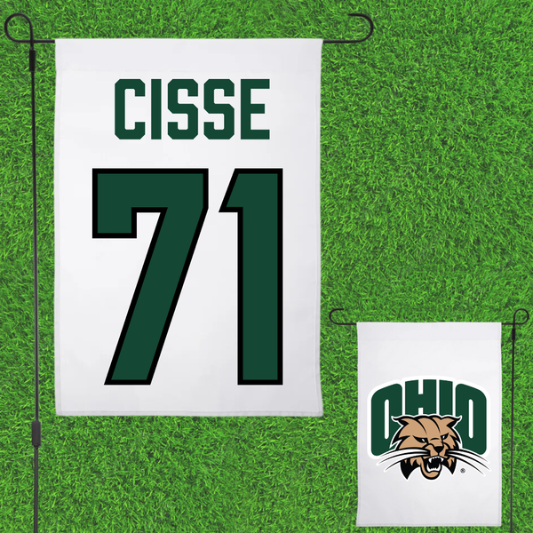 Ohio University Football White Garden Flag - #71 Tigana Cisse