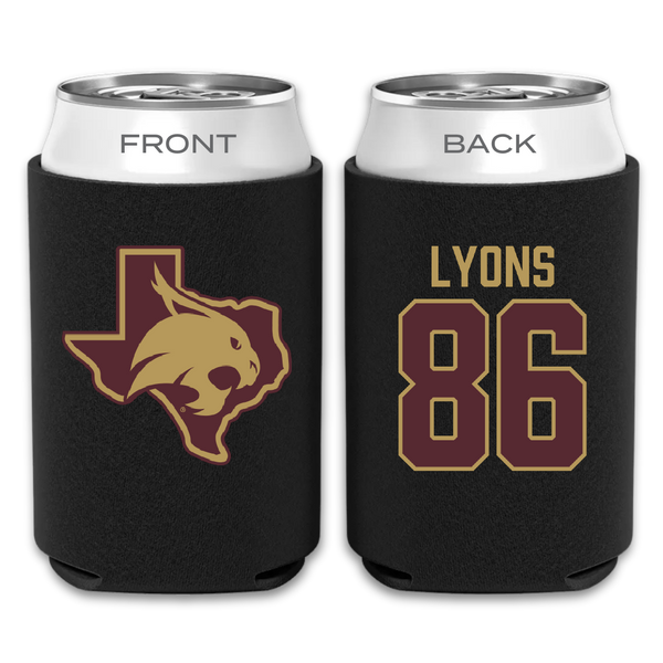 Texas State University Football Black Can Cooler - #86 Titus Lyons