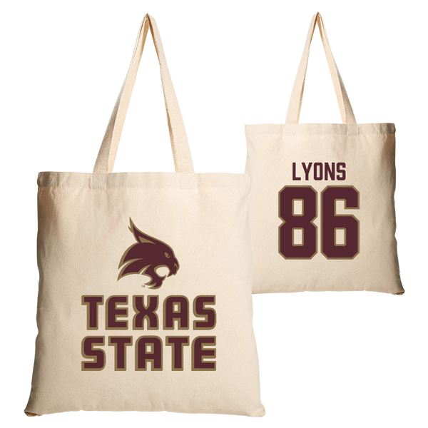 Texas State University Football Tan Canvas Tote Bag - #86 Titus Lyons