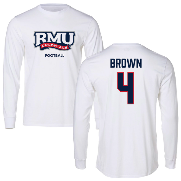 Robert Morris University Football White Long Sleeve - #4 Tony Brown