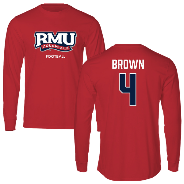 Robert Morris University Football Red Long Sleeve - #4 Tony Brown