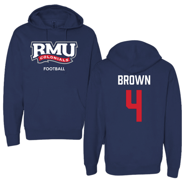 Robert Morris University Football Navy Hoodie - #4 Tony Brown