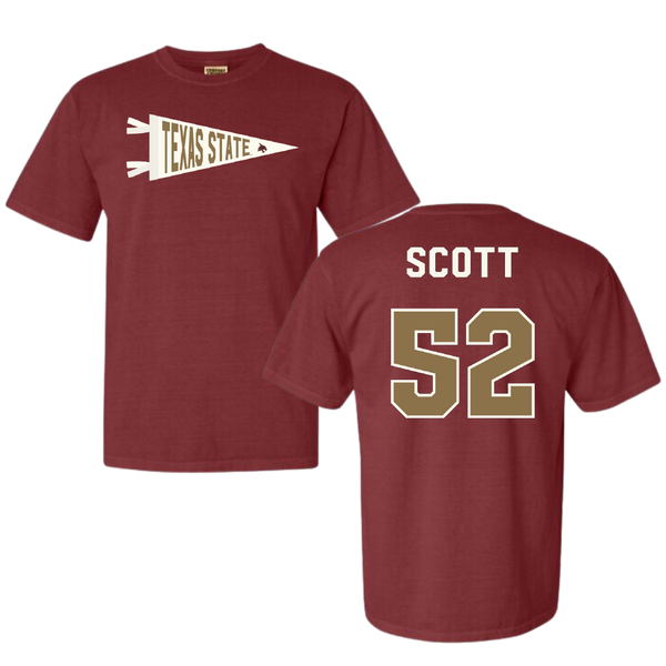 Texas State University Football Maroon Pennant Comfort Colors Tee - #52 Trenton Scott