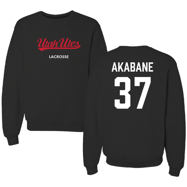 University of Utah Lacrosse (M) Black Crewneck - #37 Trey Akabane