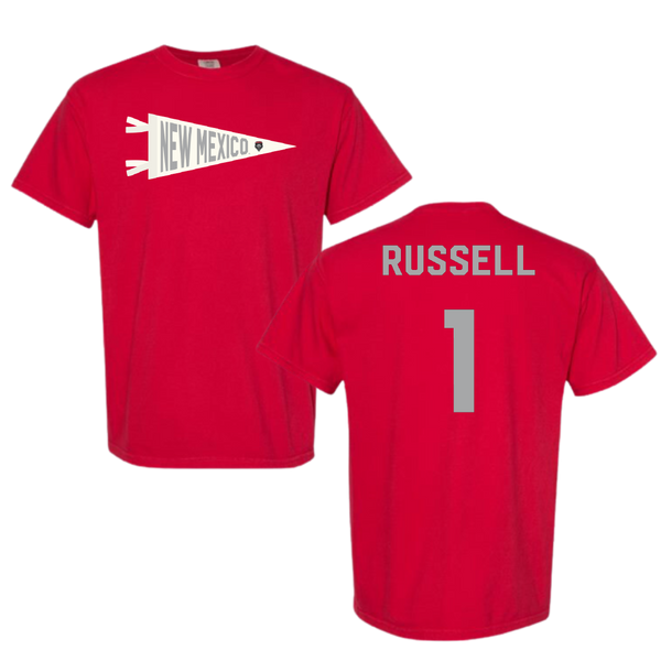 University of New Mexico Baseball Red Pennant Comfort Colors Tee - #1 Tristan Russell