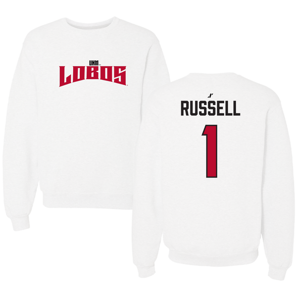 University of New Mexico Baseball White Classic Crewneck - #1 Tristan Russell