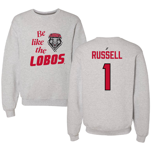 University of New Mexico Baseball Light Gray Be Like Us Crewneck - #1 Tristan Russell