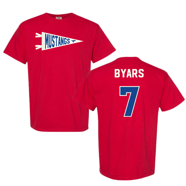 Southern Methodist University Soccer Red Pennant Comfort Colors Tee - #7 Truth Byars