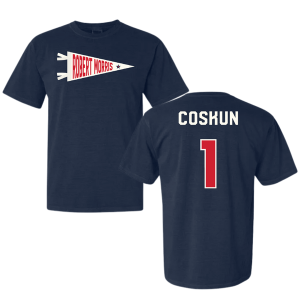 Robert Morris University Basketball Navy Pennant Comfort Colors Tee - #1 Tuana Coskun