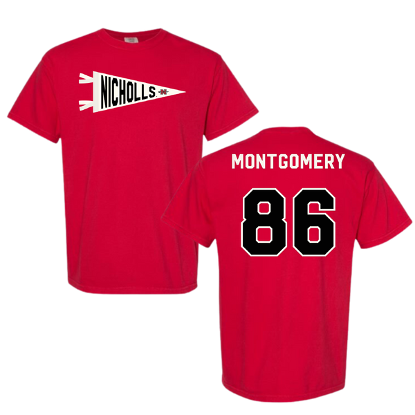 Nicholls State University Football Red Pennant Comfort Colors Tee - #86 Ty Montgomery