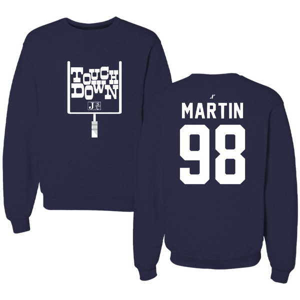 Jackson State University Football Navy Touchdown Crewneck - #98 Tyas Martin