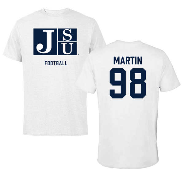 Jackson State University Football White Performance Tee - #98 Tyas Martin