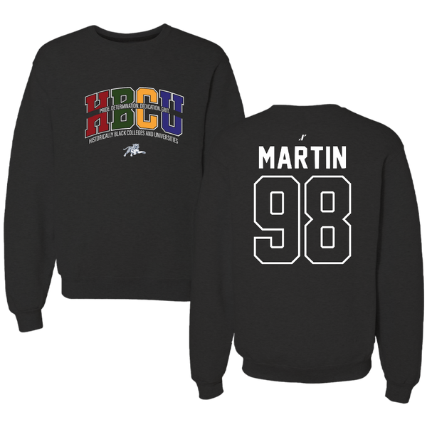 Jackson State University Football Black HBCU Crewneck - #98 Tyas Martin