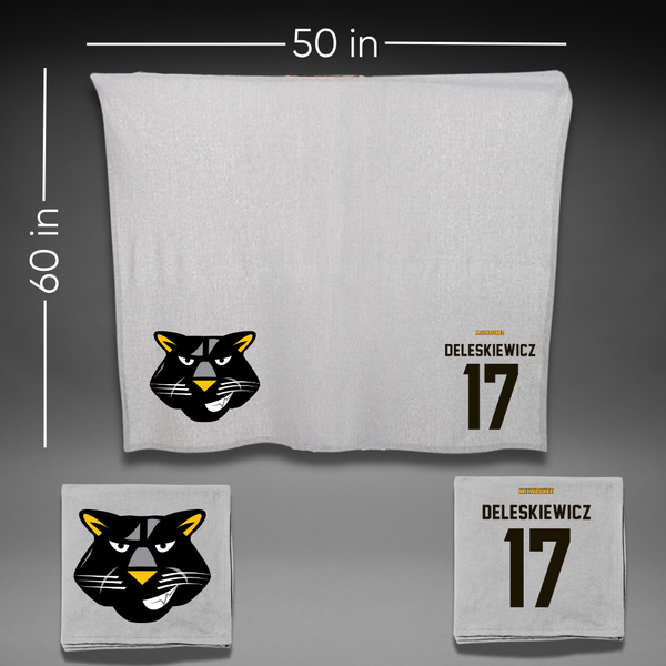 University of Wisconsin-Milwaukee Baseball Gray Blanket - #17 Tyler Deleskiewicz