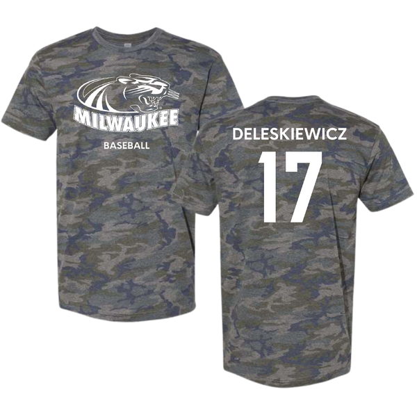 University of Wisconsin-Milwaukee Baseball Vintage Camo Tee - #17 Tyler Deleskiewicz