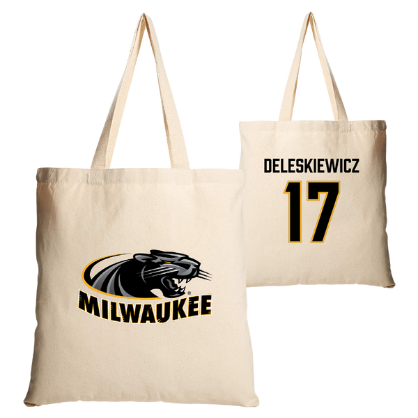 University of Wisconsin-Milwaukee Baseball Tan Canvas Tote Bag - #17 Tyler Deleskiewicz