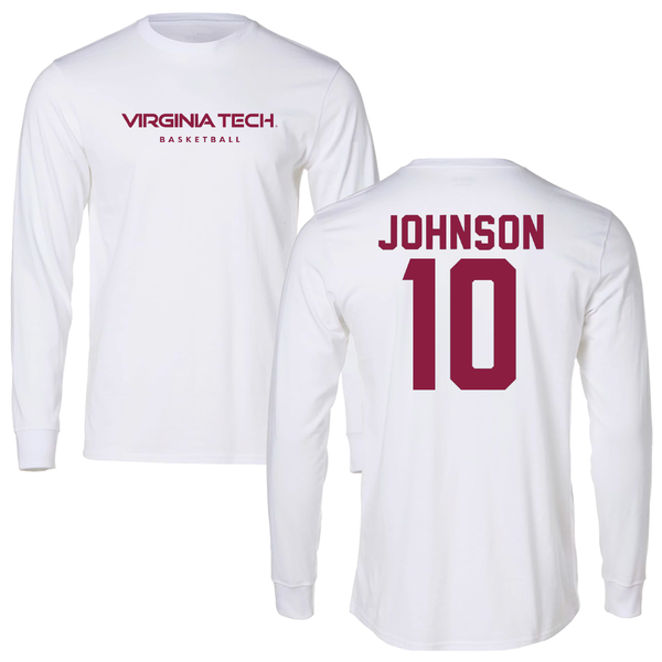 Virginia Tech Basketball White Performance Long Sleeve - #10 Tyler Johnson