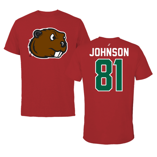 Minot State University Football Canvas Red Tee - #81 Tyler Johnson