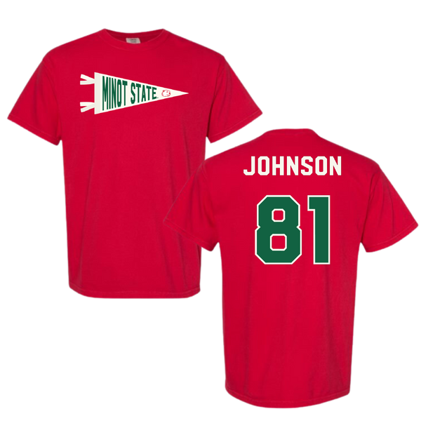 Minot State University Football Red Pennant Comfort Colors Tee - #81 Tyler Johnson