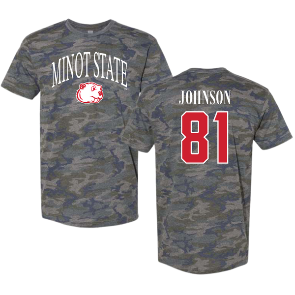 Minot State University Football Vintage Camo Tee - #81 Tyler Johnson