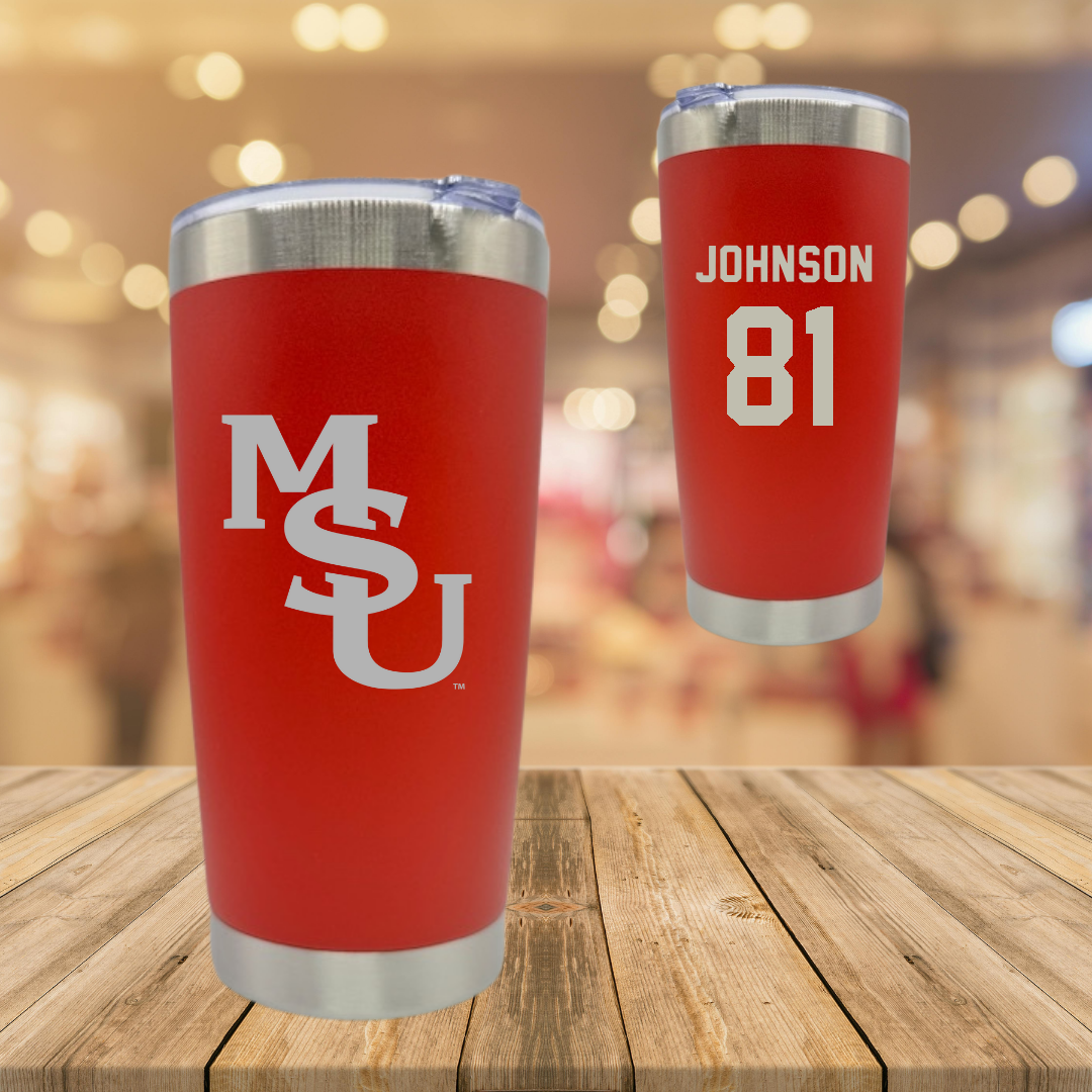 Minot State University Football Red Stainless Steel Tumbler - #81 Tyler Johnson