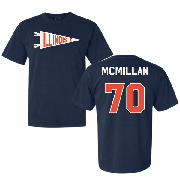 University of Illinois Football Navy Pennant Comfort Colors Tee - #70 Tyler McMillan