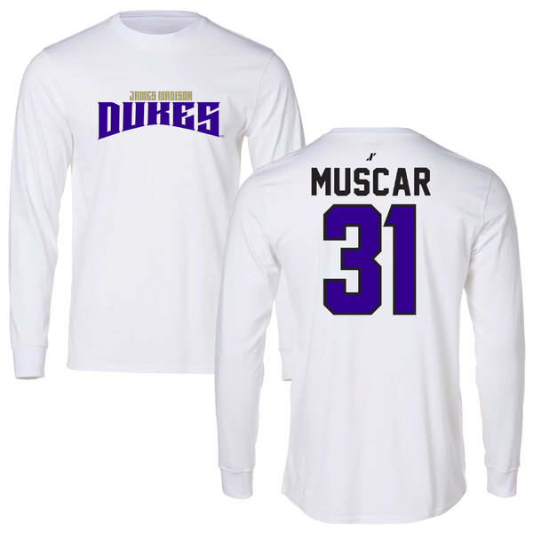 James Madison University Baseball White Classic Long Sleeve - #31 Tyler Muscar