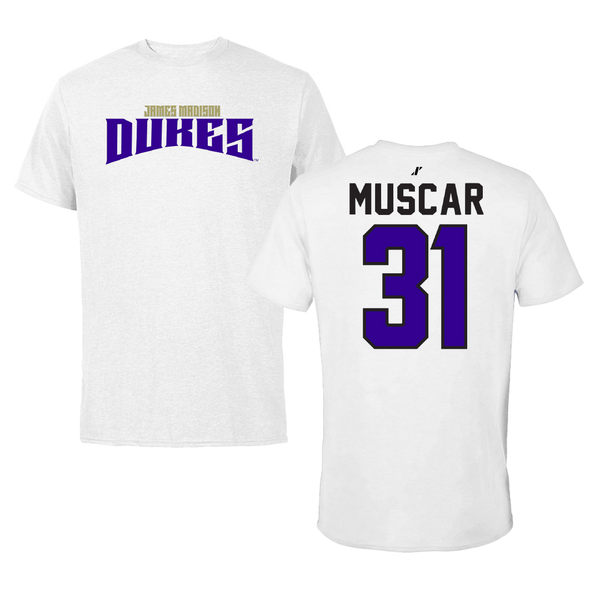 James Madison University Baseball White Tee - #31 Tyler Muscar