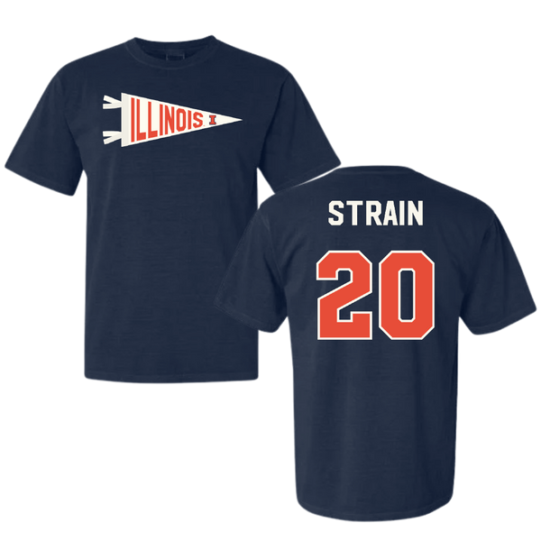 University of Illinois Football Navy Pennant Comfort Colors Tee - #20 Tyler Strain