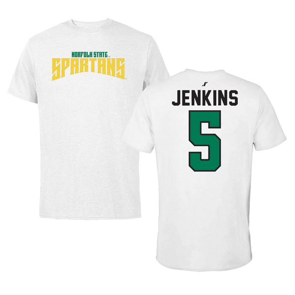 Norfolk State University Basketball White Classic Tee - #5 Tyrese Jenkins