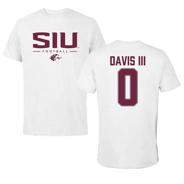 Southern Illinois University at Carbondale Football White Classic Tee - #0 Vinson Davis III
