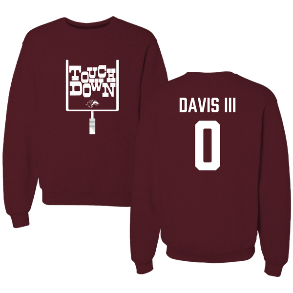 Southern Illinois University at Carbondale Football Maroon Touchdown Crewneck - #0 Vinson Davis III